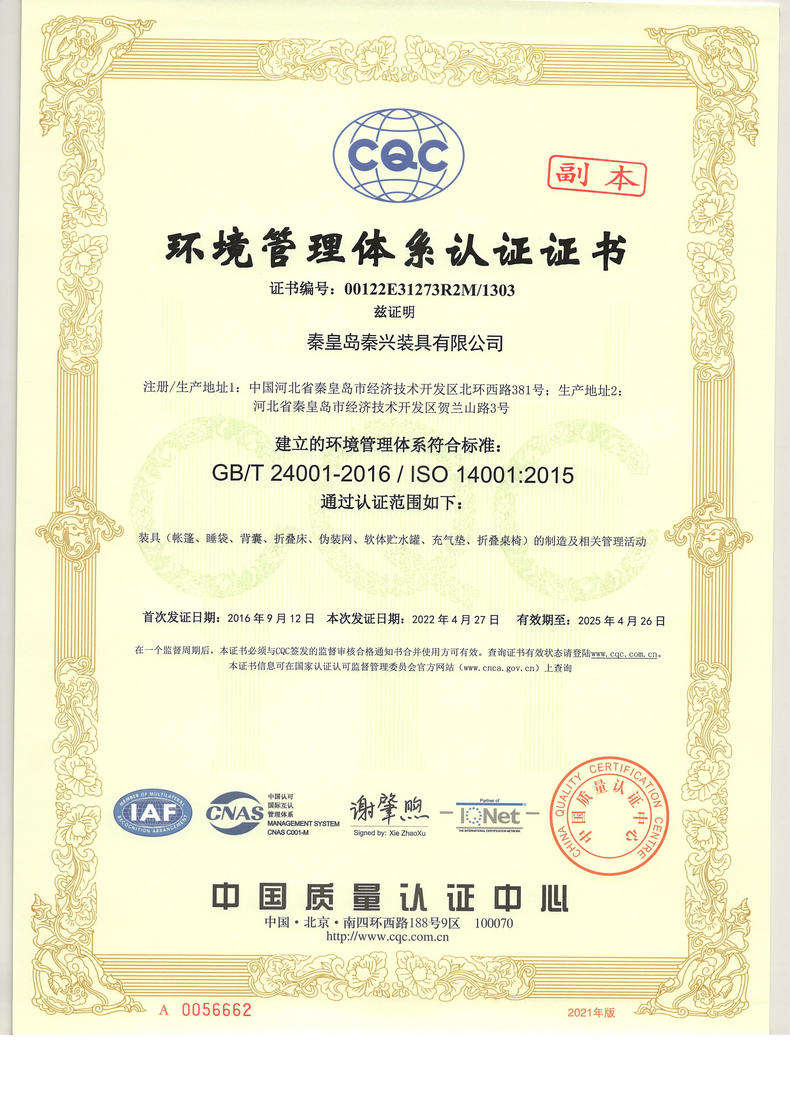 秦皇島秦興裝具有限公司有限公司源于我國(guó)第3524工廠,創(chuàng)建于2005年,占地面積30畝,是一家致力于研究,發(fā)展,制造和銷售為一體的綜合性裝具及紡織服裝加工生產(chǎn)企業(yè),我們的主要產(chǎn)品有單、棉帳篷,民用帳篷,旅游帳篷集各種機(jī)工產(chǎn)品等。